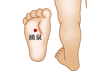 摩涌泉,足底心就是涌泉穴,以拇指按压涌泉穴,旋转按摩30-50下,每日2次。