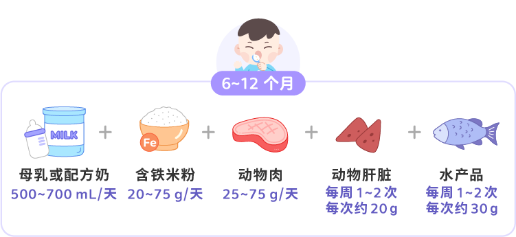 6 ~ 12 个月补铁食物搭配方法: