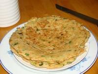 不粘锅中,放点油润锅,取一大勺糊糊,均摊在锅中。