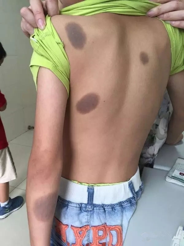 郑磊医师说,我为雯雯详细地进行了检查,发现孩子背部及左前臂有5块圆形及椭圆形暗褐色色素沉着斑,边界清晰,皮疹直径约2.5cm至6cm大小不等,圆形斑块并没有瘙痒、疼痛感。郑医师为其进行血常规、血小板等相关检查均未见异常。