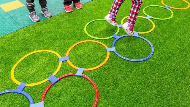 技能聚焦:跳跃游戏活动了身体两侧的肌肉,增强了协调能力。跳跃还增强了手眼协调能力和平衡能力,因为宝宝要跳到他看到的地方,在落地后必须保持身体直立。