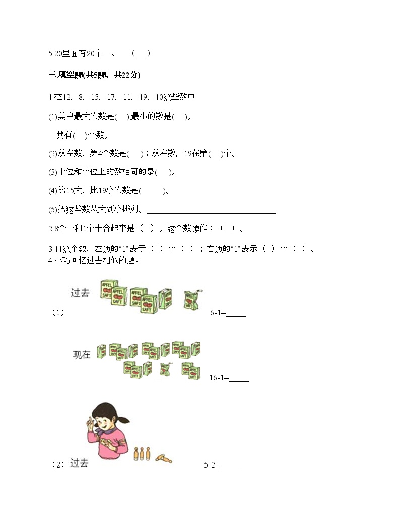 一年级上册数学试题-第七单元 认识钟表试题(含答案)