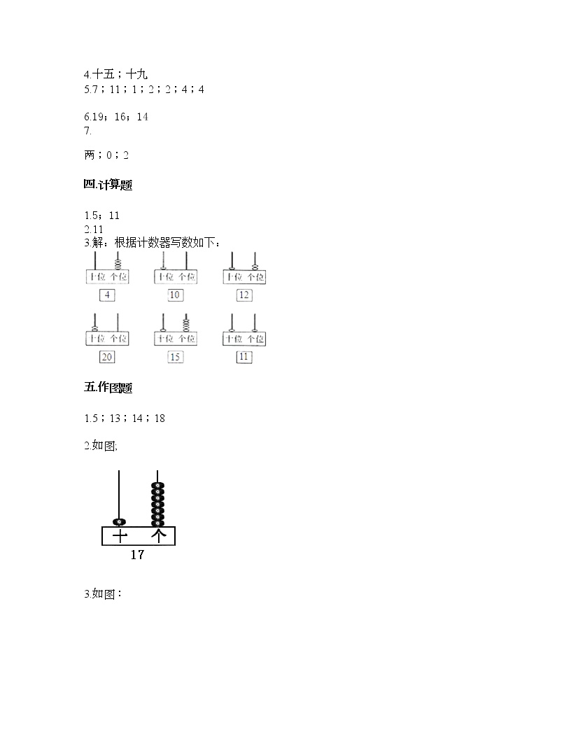 一年级上册数学试题-第六单元 11-20各数的认识试题(含答案)